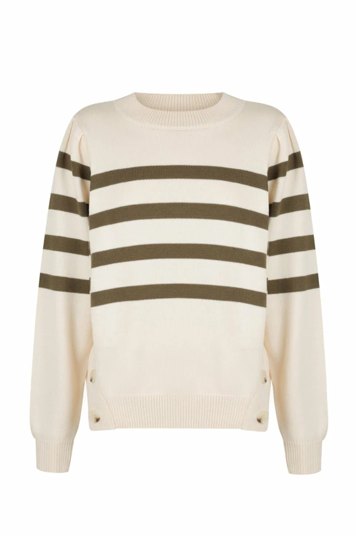 Stripe wool blend jumper with side button detail.