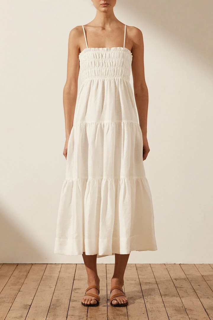 Be the first to review “Shona Joy BRUNA LINEN OPEN BACK SHIRRED MIDI DRESS – IVORY” Cancel reply