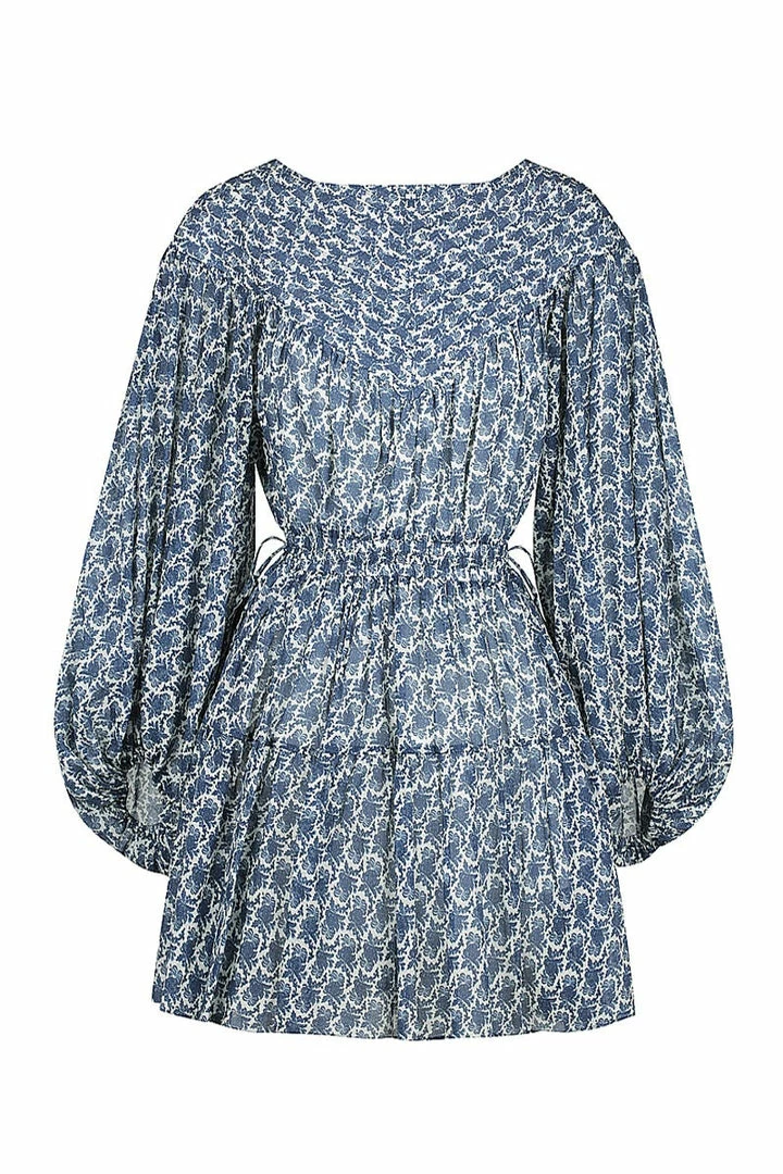 Balloon sleeve pin tuck mini dress in the exclusive Daniela print.