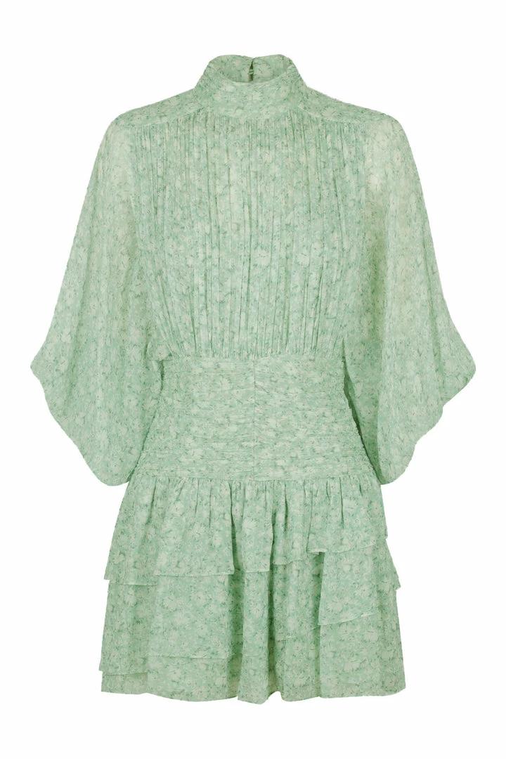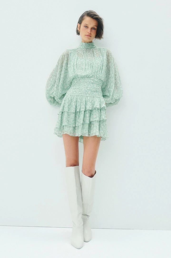 Long sleeve mini dress in a light weight semi-sheer chiffon in the exclusive Aurore print.