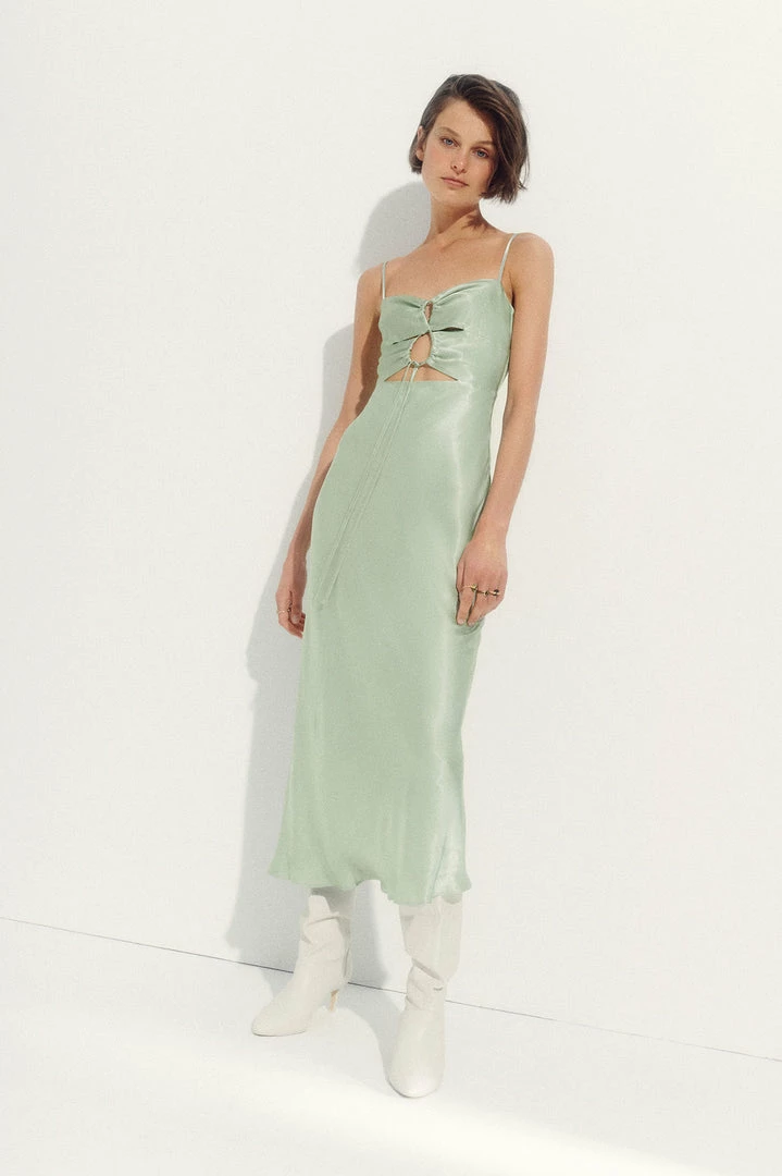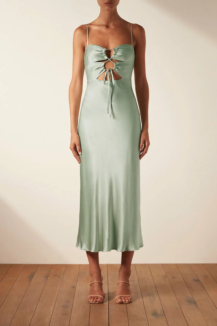 SKU: shona-joy-6730397253716 Categories: DRESSES, GUESTS, SJ Edits, VACATION, Wedding Tags: Dresses, EUROSUMMER, Green, Length: midi, Midi Dresses, Sibling|alma-lace-up-midi-dress-cumin, Sibling|avriel-lace-up-midi-dress, Swatch|thyme