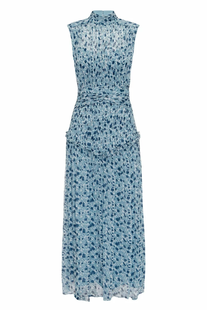 High neck midi dress in a light weight semi-sheer chiffon in the exclusive Francesca print.