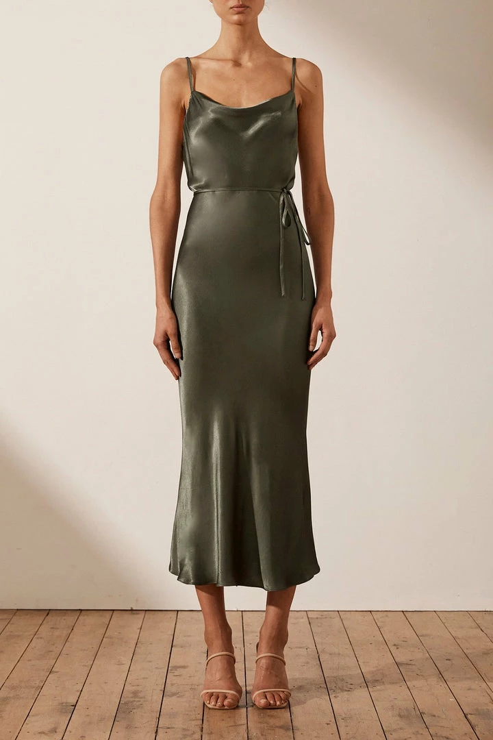 Be the first to review “Shona Joy DRESSES LA LUNE BIAS COWL MIDI DRESS – OLIVE” Cancel reply