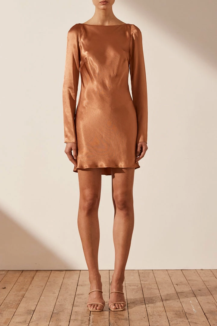 Be the first to review “Shona Joy DRESSES LA LUNE LONG SLEEVE BACKLESS MINI DRESS – COPPER” Cancel reply