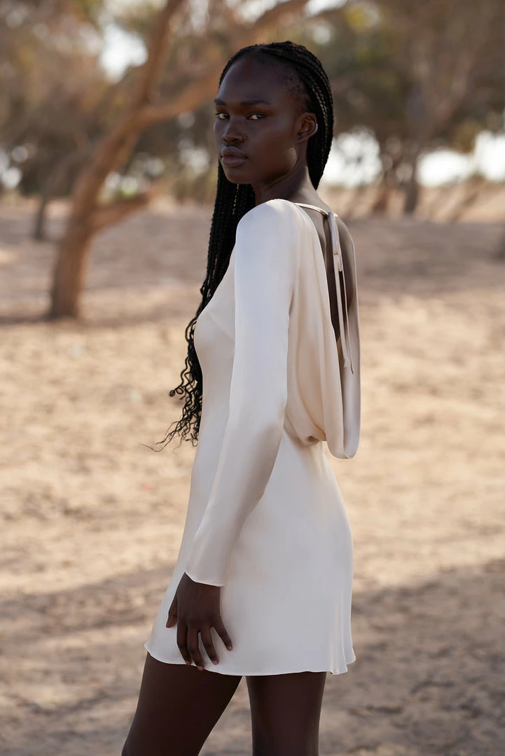 SKU: shona-joy-6681064702036 Categories: BRIDES, BRIDESMAIDS, DRESSES, EVENTS, LA LUNE COLLECTION, SJ Edits, SUMMER, VACATION, Wedding Tags: Au-8, Formal Dresses, January 2022, Print: no, Sibling|la-lune-long-sleeve-backless-mini-dress-cream, Sleeve: long, Swatch|cream, Us-2