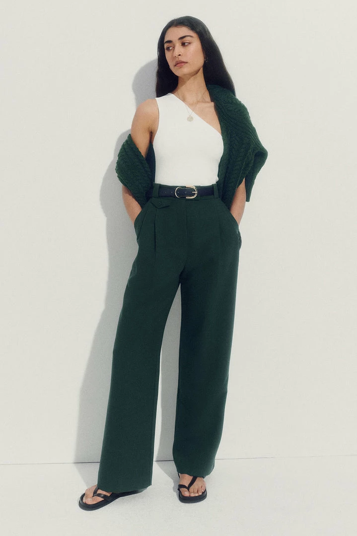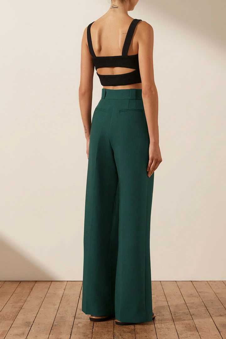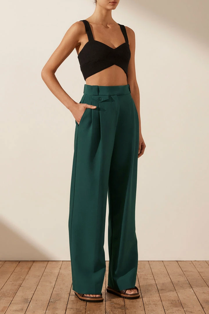 High waisted tailored pant with coin pocket detail.