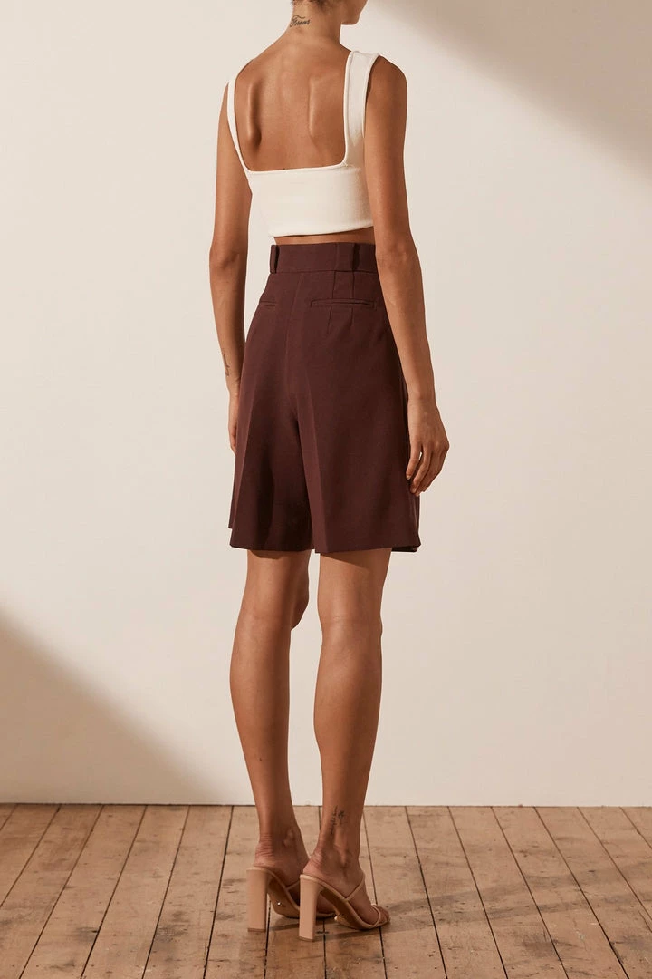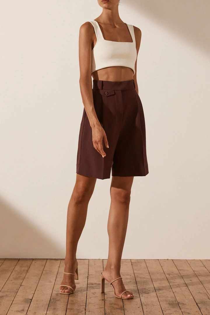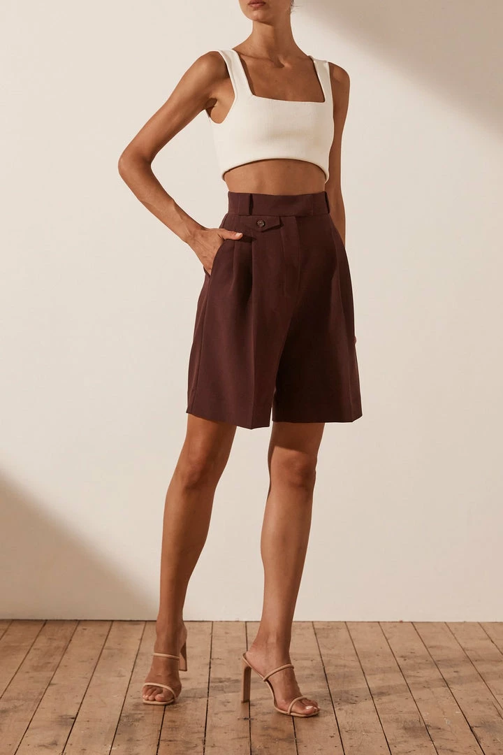 SKU: shona-joy-6620640346196 Category: SHORTS & PANTS Tags: August 2021, Colour: brown, Fabric: ivy suiting, Main Section, Neutrals, Print: no, Sibling|ivy-high-waisted-tailored-short-black, Swatch|chocolate