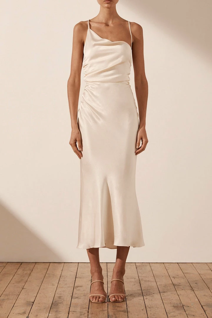 Be the first to review “Shona Joy LA LUNE ASYMMETRICAL BIAS COWL MIDI DRESS – CREAM DRESSES” Cancel reply