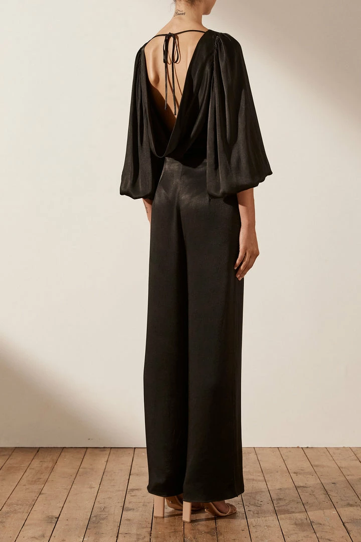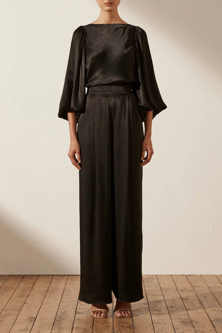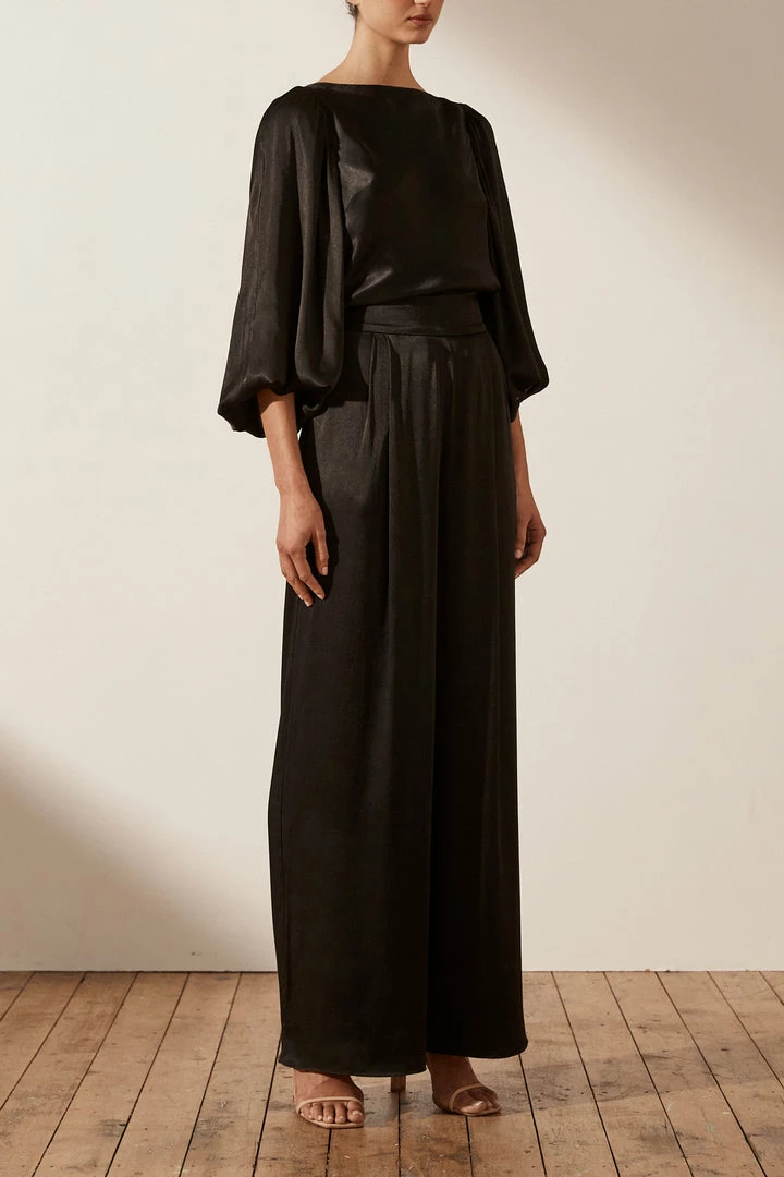 SKU: shona-joy-6609536417876 Categories: BRIDESMAIDS, LA LUNE COLLECTION, TOPS, Wedding Tags: April 2021, Category: tops, Drop: april 2021, Fabric: viscose shine, Length: full, Sibling|la-lune-cowl-back-balloon-sleeve-blouse-cream, Swatch|black, Us-6