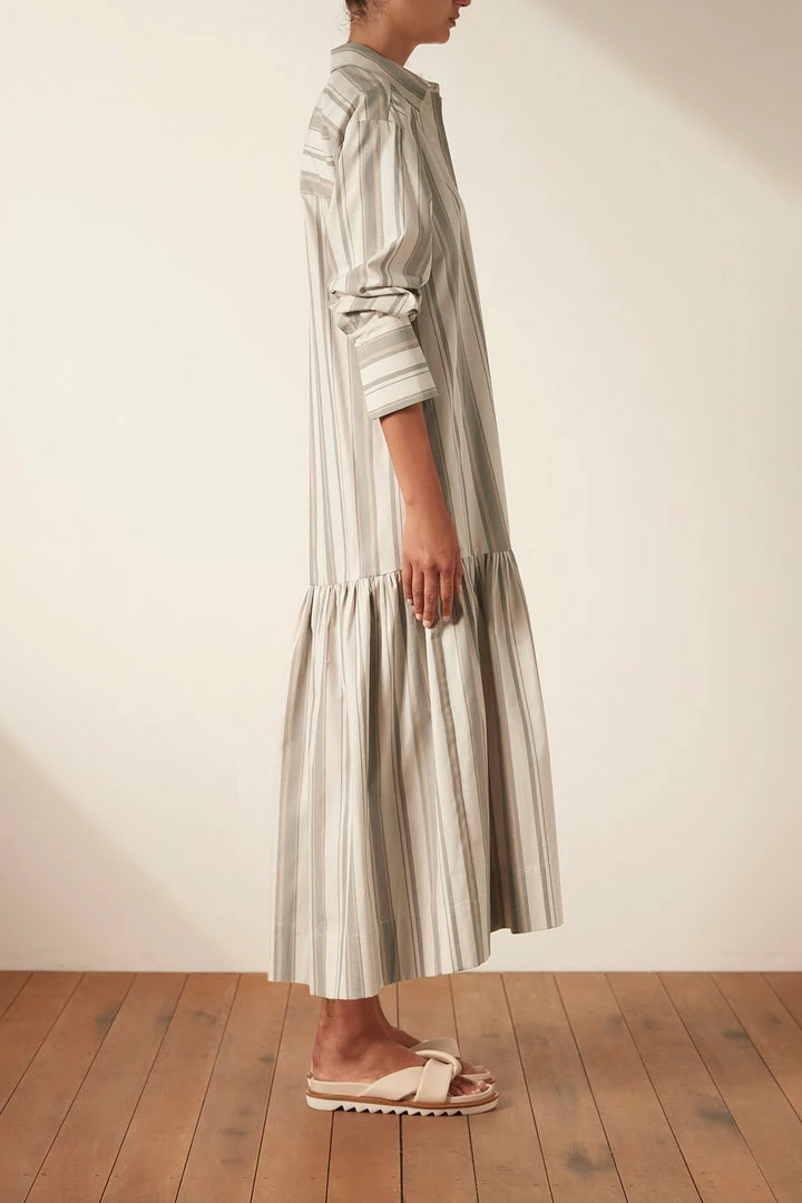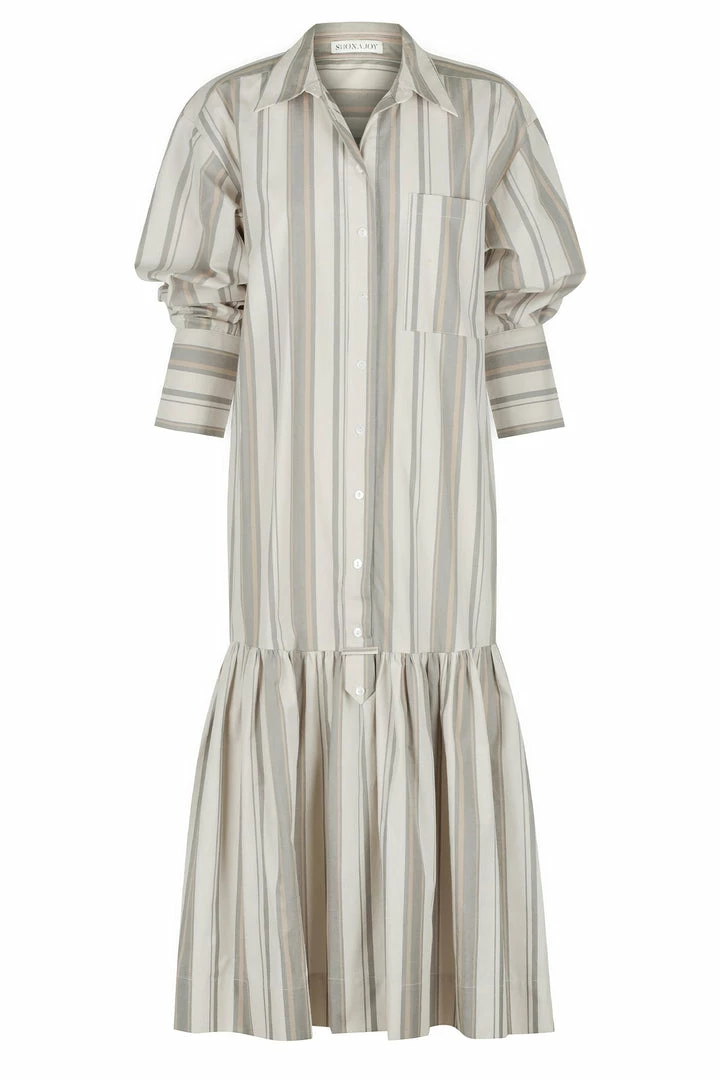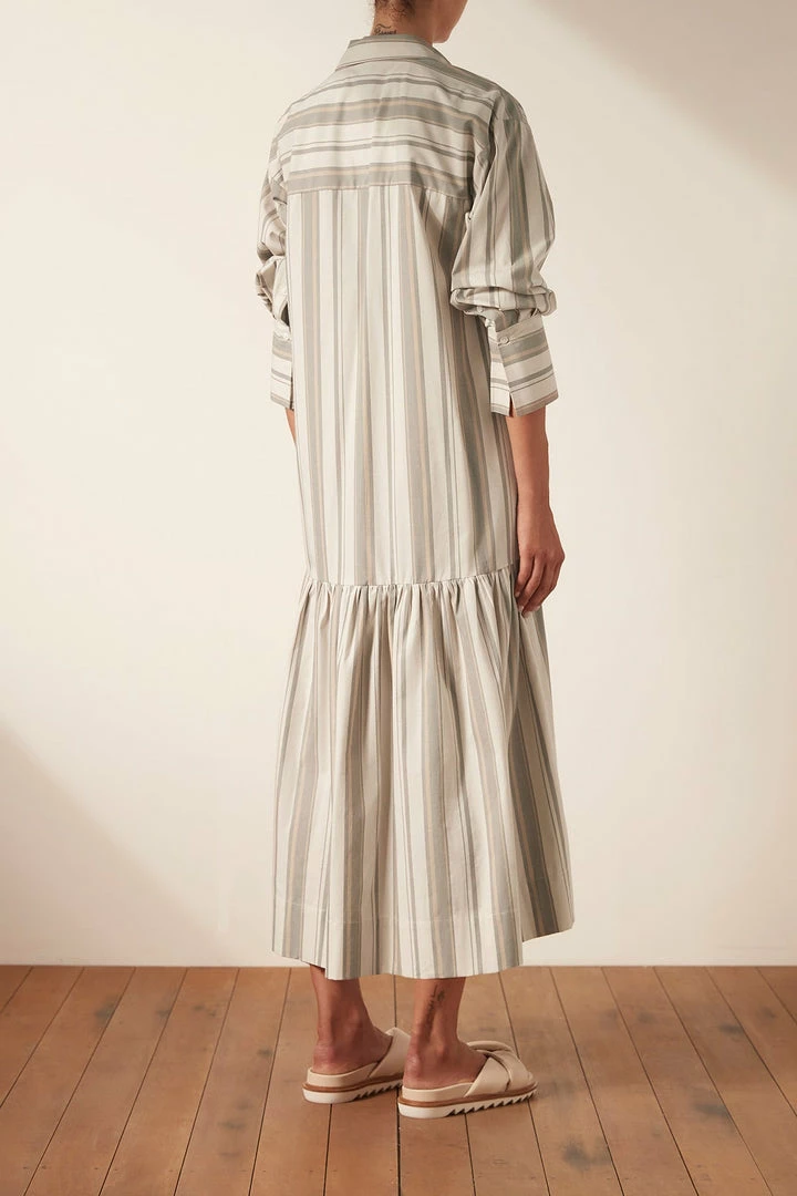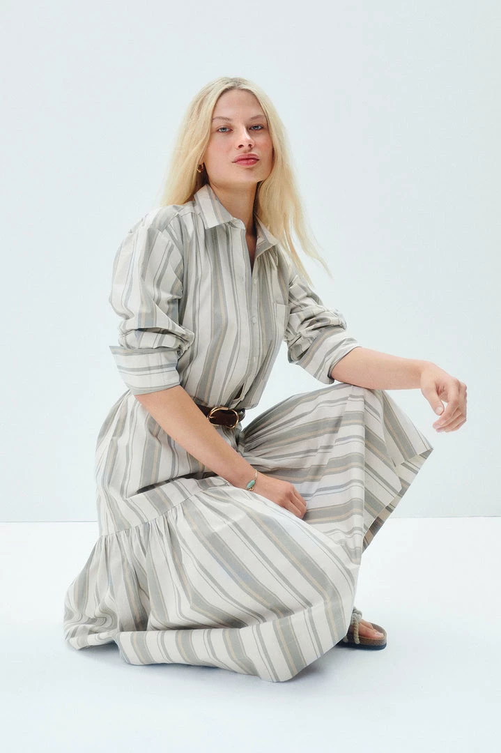 Long sleeve shirt midi dress in a premium cotton stripe.