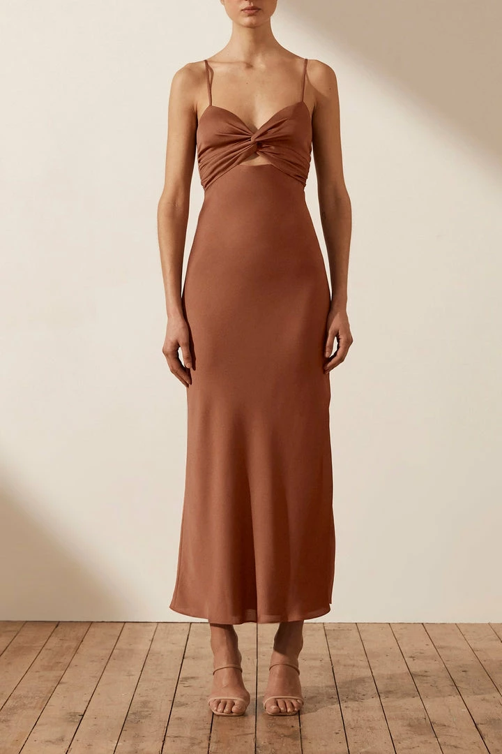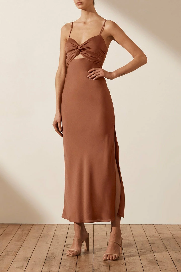 Be the first to review “Shona Joy LUXE TWIST FRONT SLEEVELESS MIDI DRESS – MOCHA” Cancel reply
