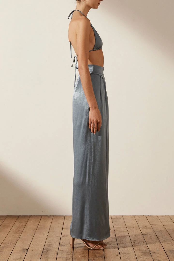 Tuxedo trouser in a silk touch fabric with a luxurious sheen.