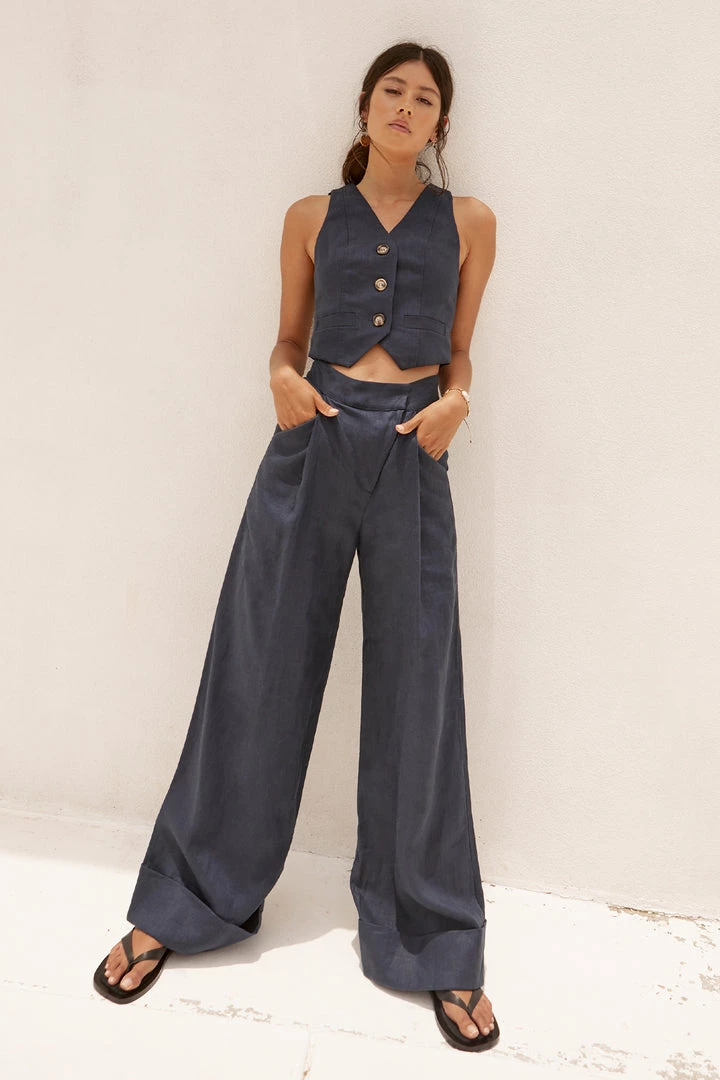 SKU: shona-joy-6686396317780 Categories: SHORTS & PANTS, SJ Edits, SUITING, VACATION Tags: All Bottoms, Au-10, Au-12, Colour_tone: cool, Navy, Pants, Sibling|luna-linen-asymmetric-wide-leg-pant-natural, Swatch|navy