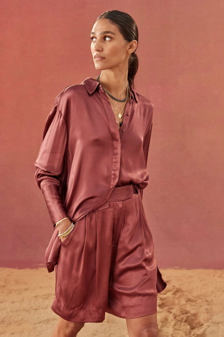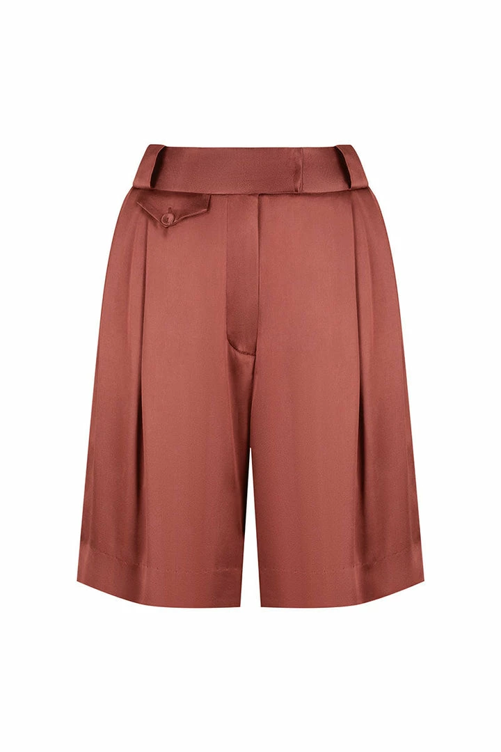 Tailored short with coin pocket in a silk touch fabric with a luxurious sheen.
