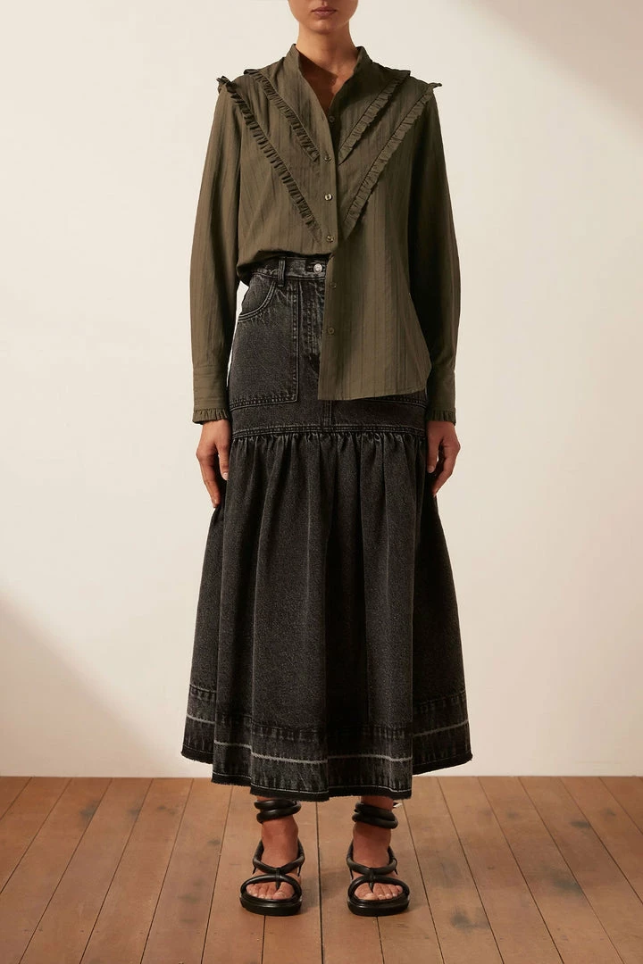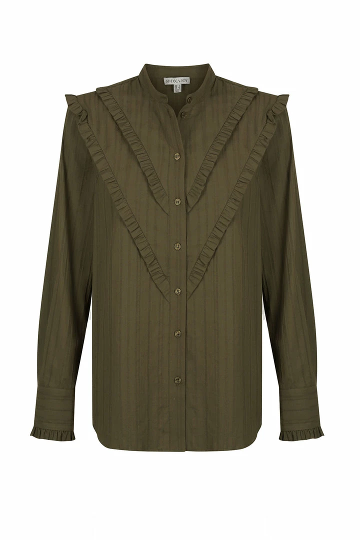 Be the first to review “Shona Joy TOPS ELLA CHEVRON FRILL SHIRT – FOREST” Cancel reply