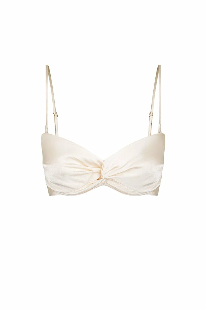 Twist front bralette in a silk touch fabric with a luxurious sheen.
