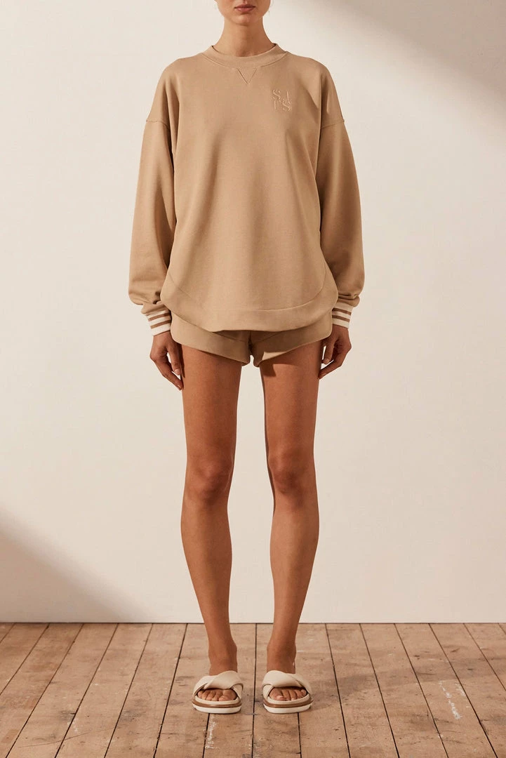 Be the first to review “Shona Joy TOPS SJ LOGO CURVED HEM JUMPER – TAN” Cancel reply
