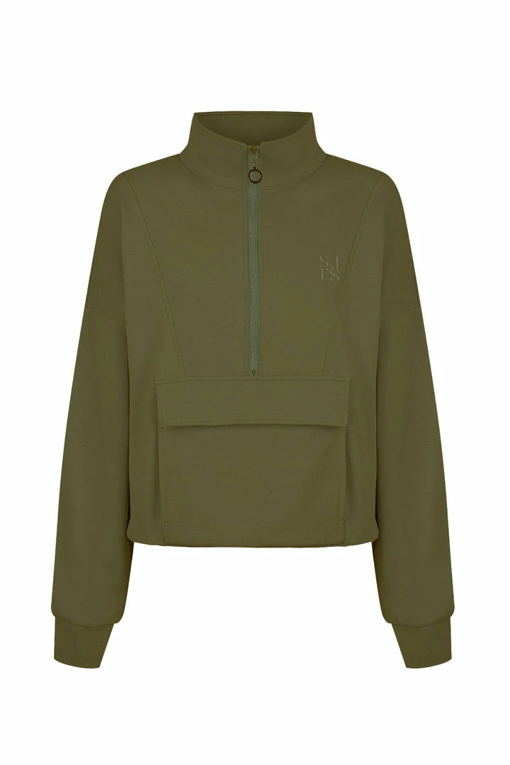 Zip collar sweater with embroidered logo in a soft french terry cotton.